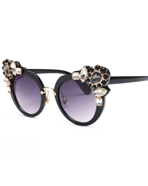 Sexy Round Neck See-Through Pearl Trim Black Blending One-piece Jumpsuits(Without Subcoating)