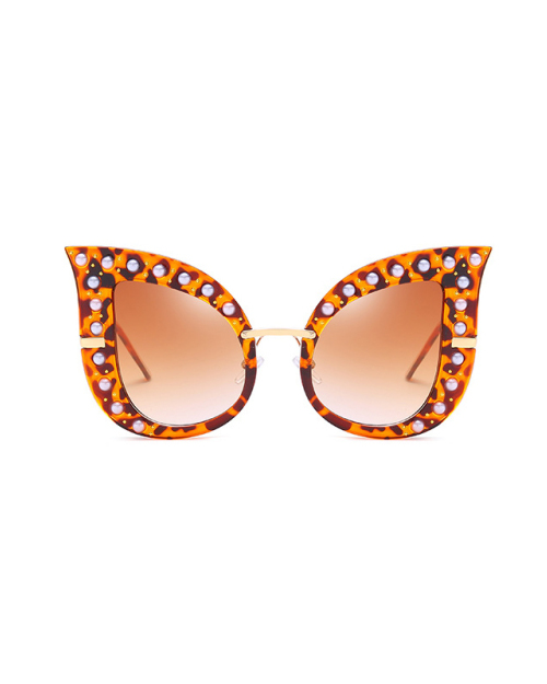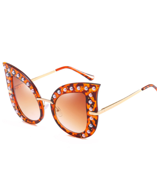 Fashion Pearl Decoration Leopard PC Sunglasses