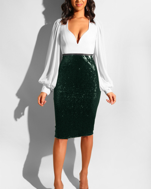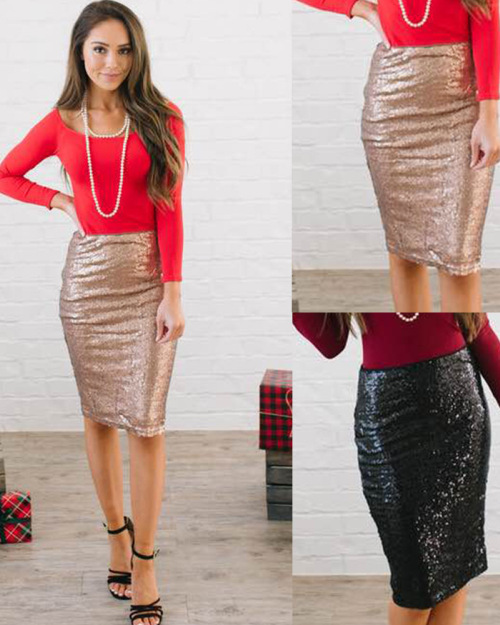Best selling sexy European and American sequins Slim with lining bag hip skirt #94960
