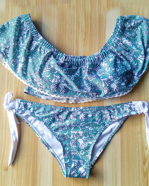 Euramerican Floral Print Blue Polyester Two-piece Swimwear