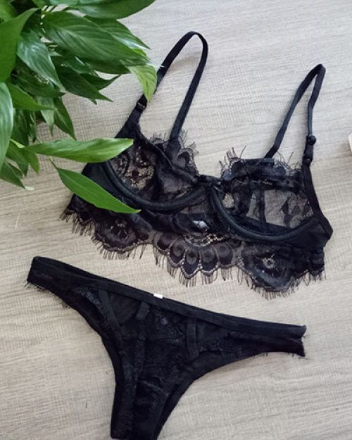 Sexy Hollow-out Black Lace Two-piece Swimwear