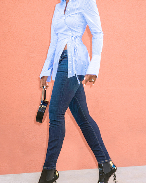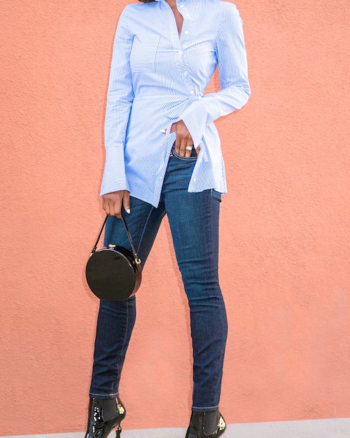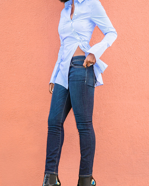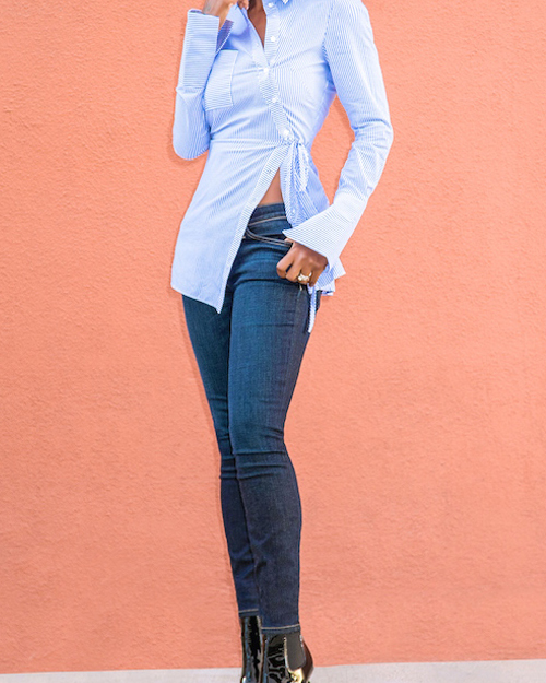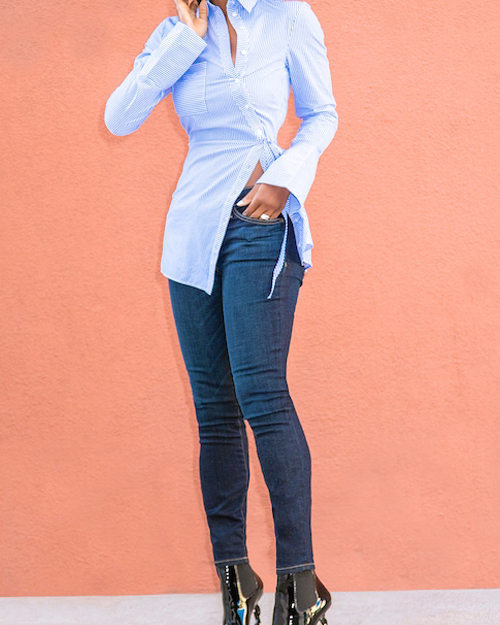 Euramerican Turndown Collar Long Sleeves Striped Blue Polyester Shirts