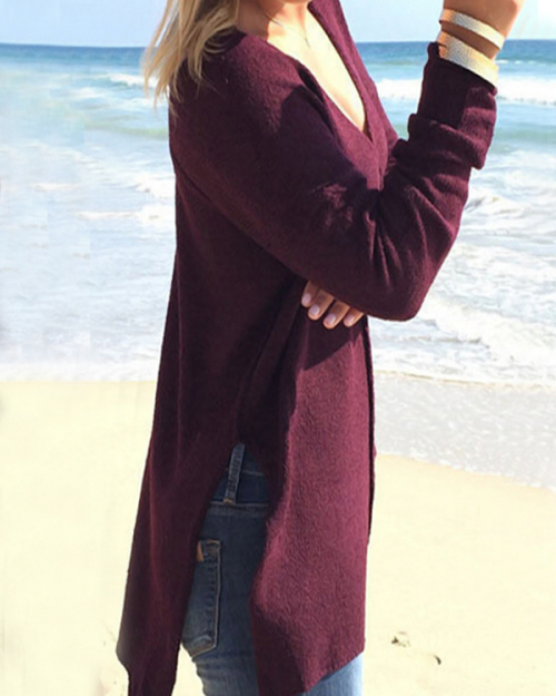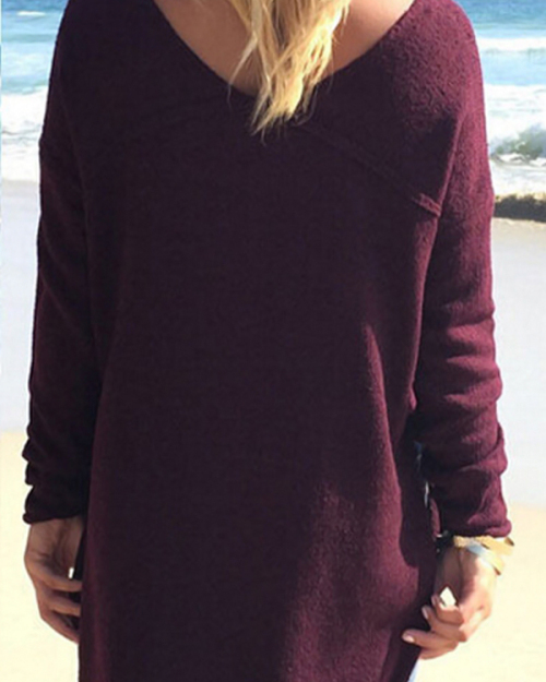 Polyester V Neck Long Sleeve Solid Blouses&Shirts