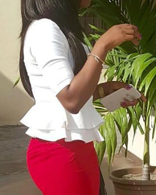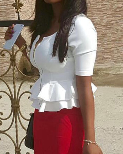 Stylish Round Neck Half Sleeves Falbala Design White Polyester Shirts