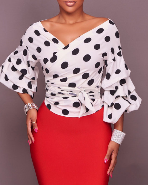 Stylish V Neck Long Sleeves Dots Printed White Cotton Shirts