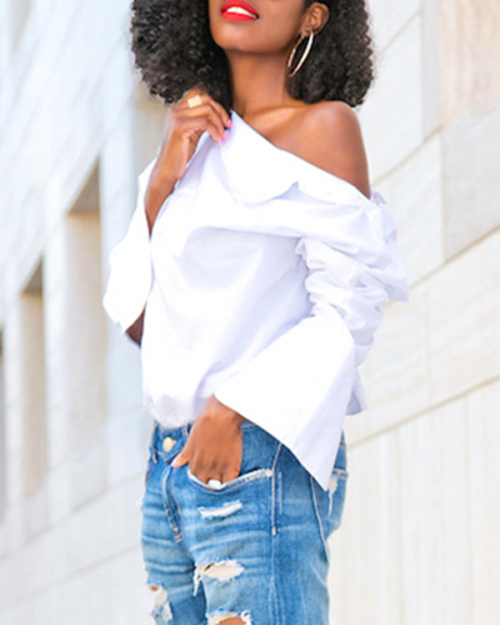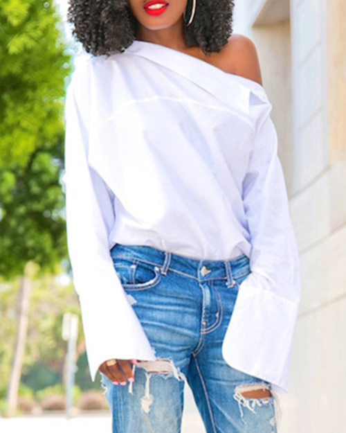 Trendy Dew Shoulder White Imitated Silk Shirts