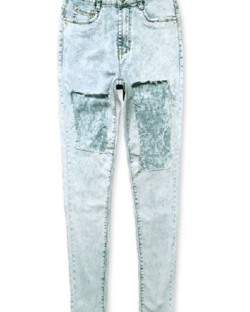 Casual Broken Holes Button Fly Design Cotton Blend Skinny Pants