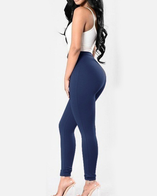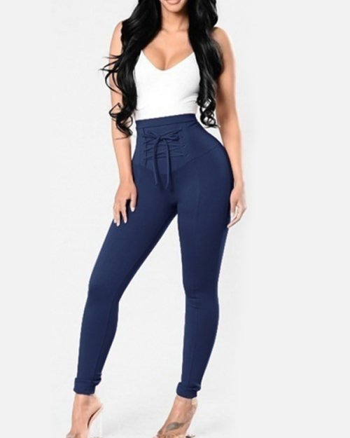 Euramerican High Waist Lace-up Blue Polyester Pants
