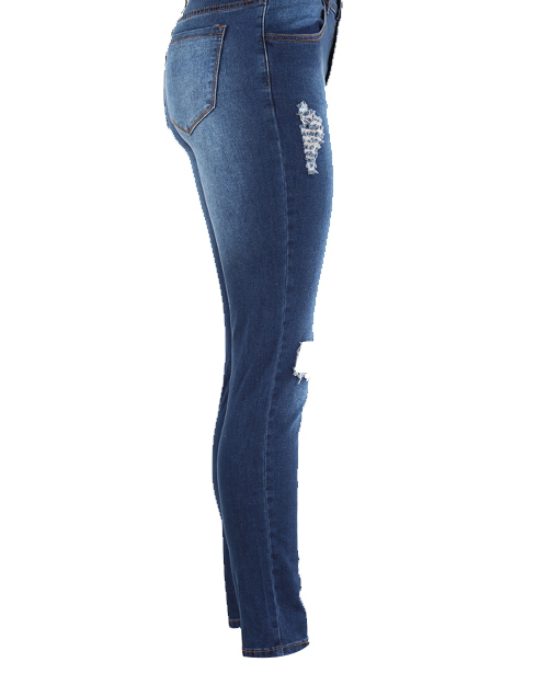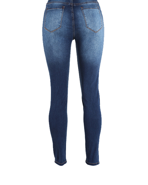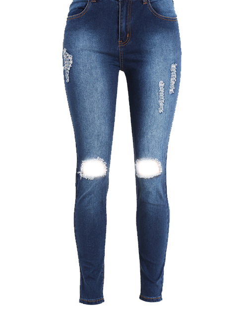 Fashion Mid Waist Broken Holes Blue Denim Zipped Jeans