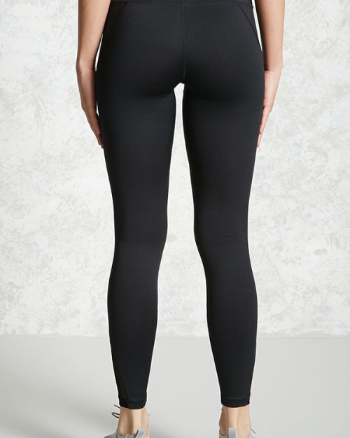 Fashion Mid Waist See-Through Net Yarn Splicing Black Polyester Leggings