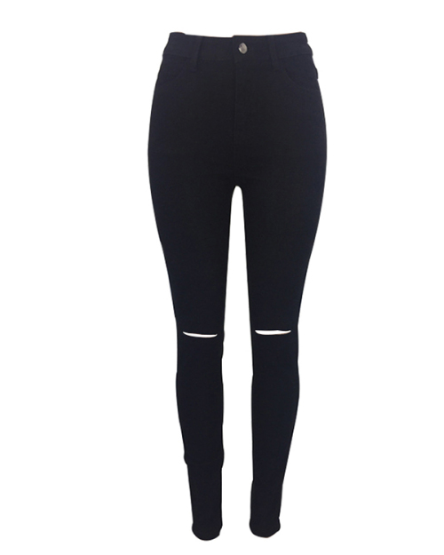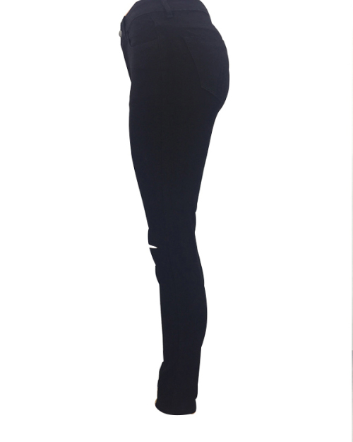 Trendy Mid Waist Broken Holes Black Denim Pants