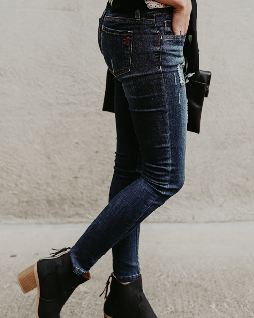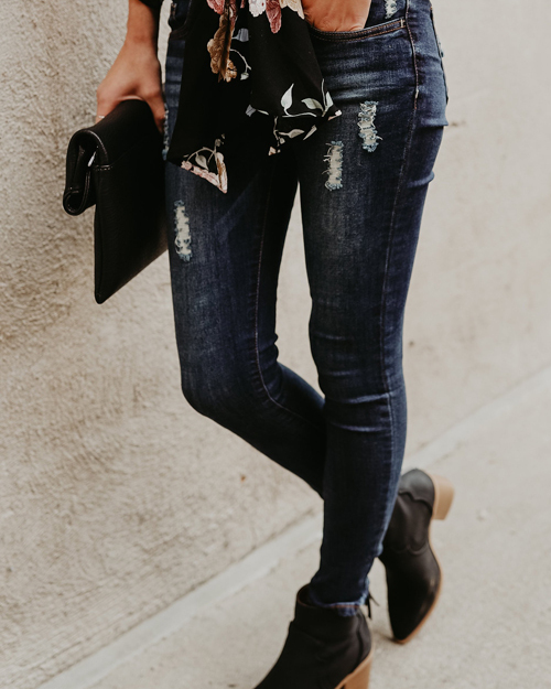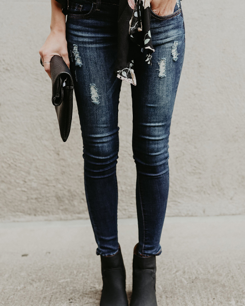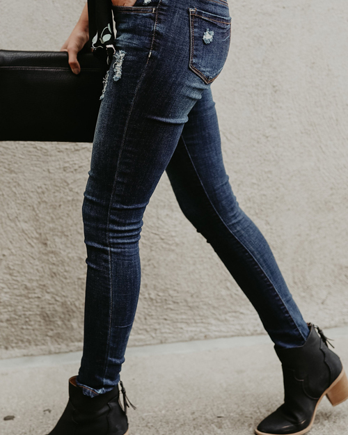 Trendy Mid Waist Broken Holes Blue Denim Jeans