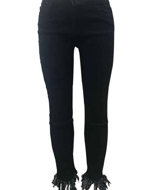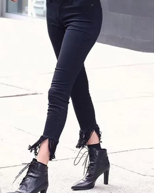 Trendy Mid Waist Torn Edges Black Denim Pants