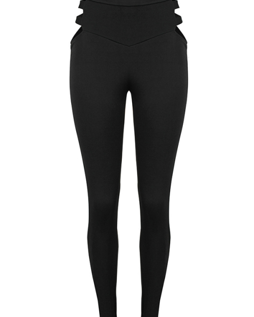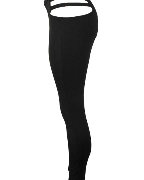 Fashionable High Waist Hollow-out Black Polyester Leggings