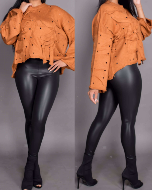 Euramerican High Elastic Waist Black Leather Pants