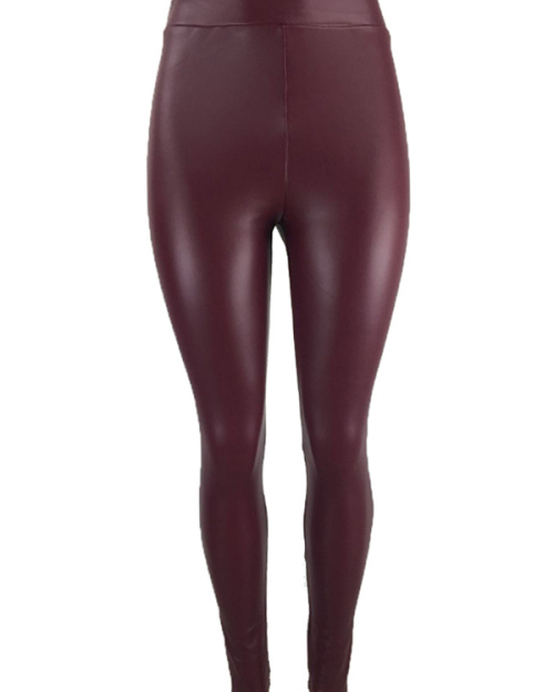 Euramerican High Elastic Waist Wine Red Leather Pants