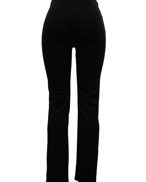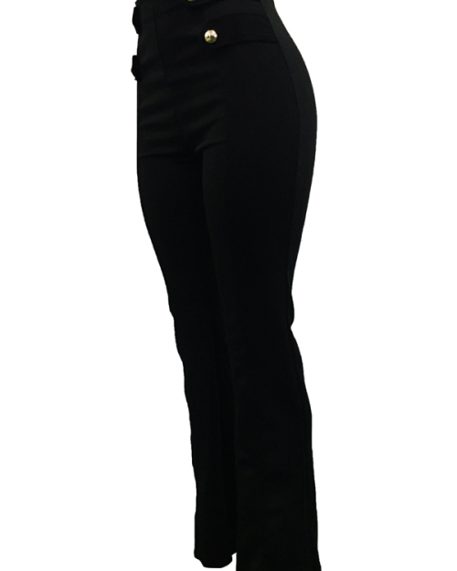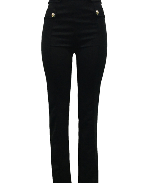 Euramerican High Waist Button Decorative Black Polyester Pants