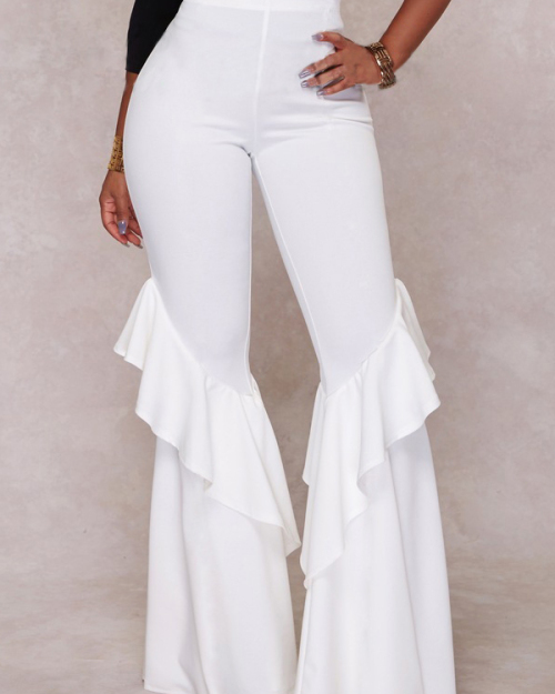 Euramerican High Waist Falbala Design White Qmilch Pants