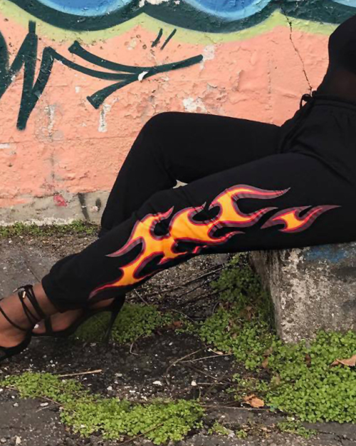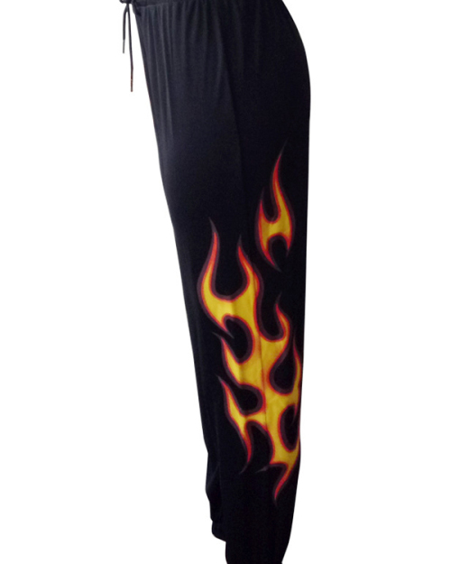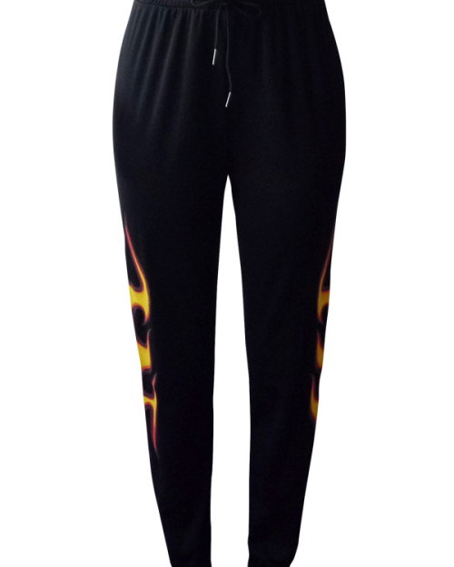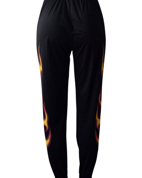 Euramerican High Waist Offset Printing Design Black Twilled Satin Pants