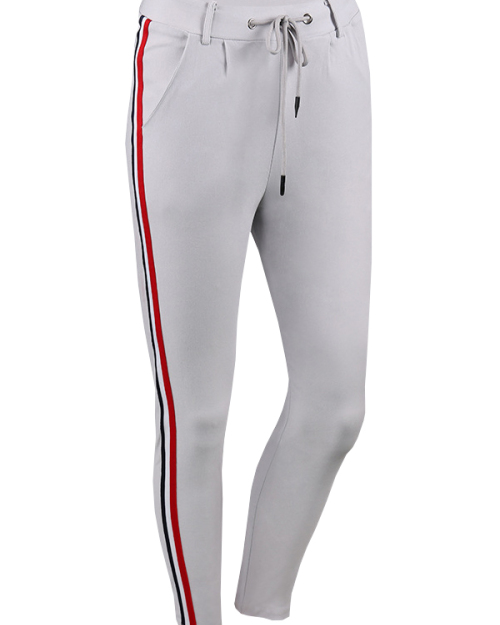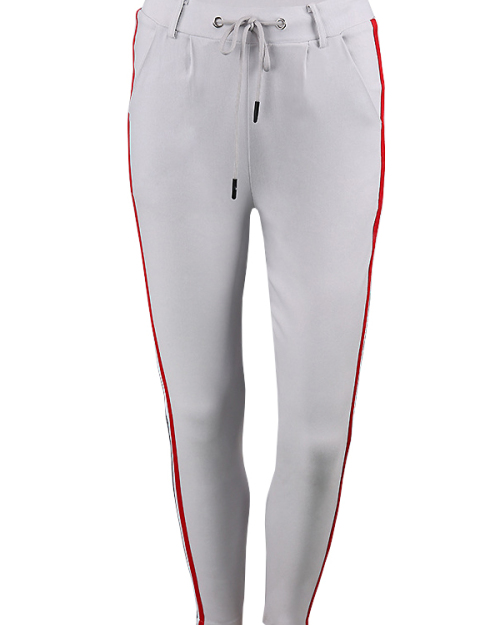 Euramerican High Waist Striped Patchwork Grey Polyester Pants