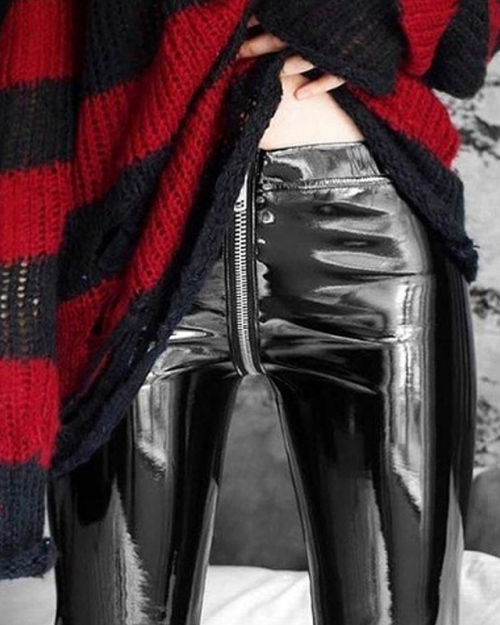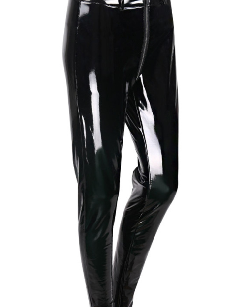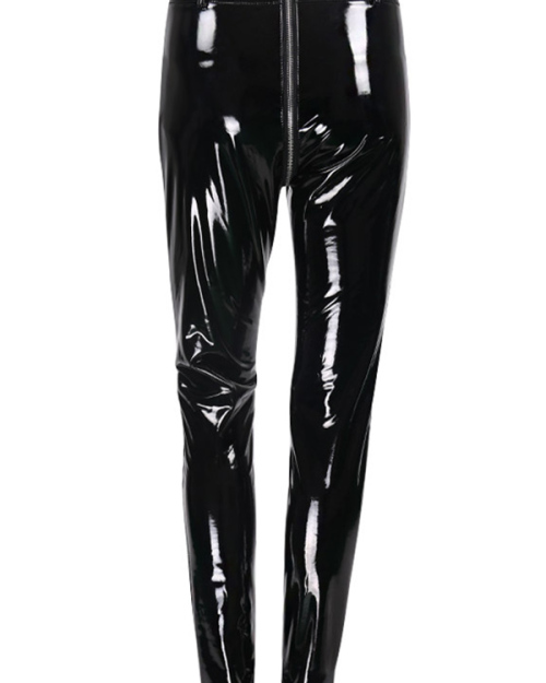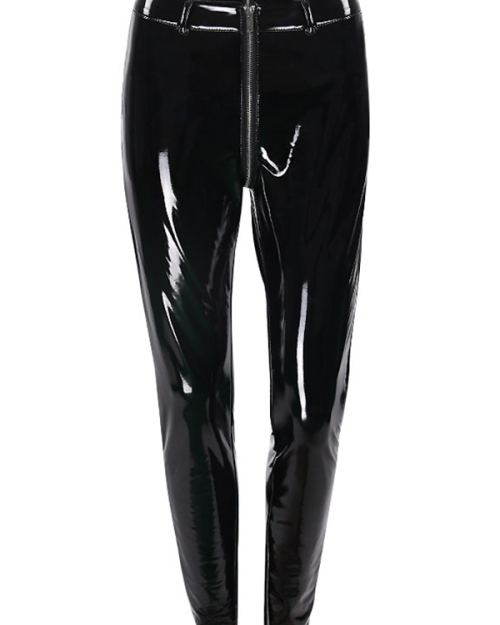 Euramerican High Waist Zipper Design Black Leather Pants(Without Accessories)