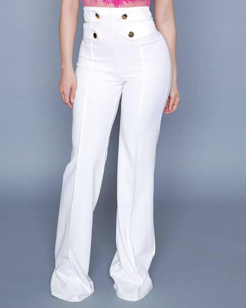 Euramerican High Waist Zipper Design White Polyester Pants