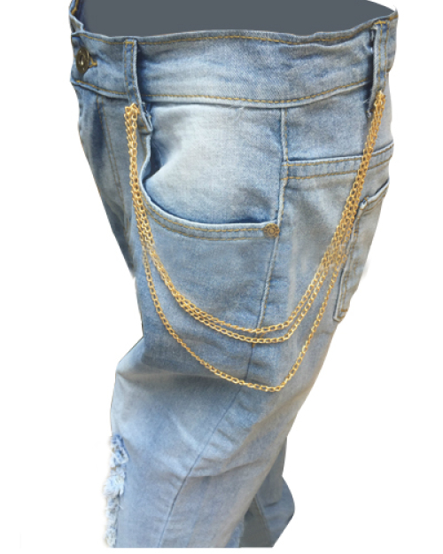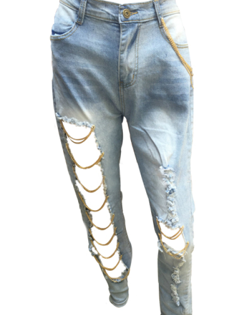 Fashion Mid Waist Broken Holes Light Blue Denim Pants