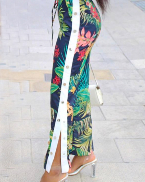 Polyester Print Elastic Waist Mid Straight Pants Pants