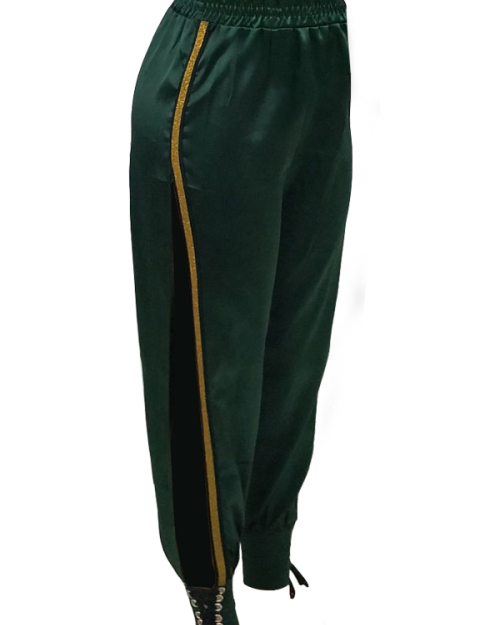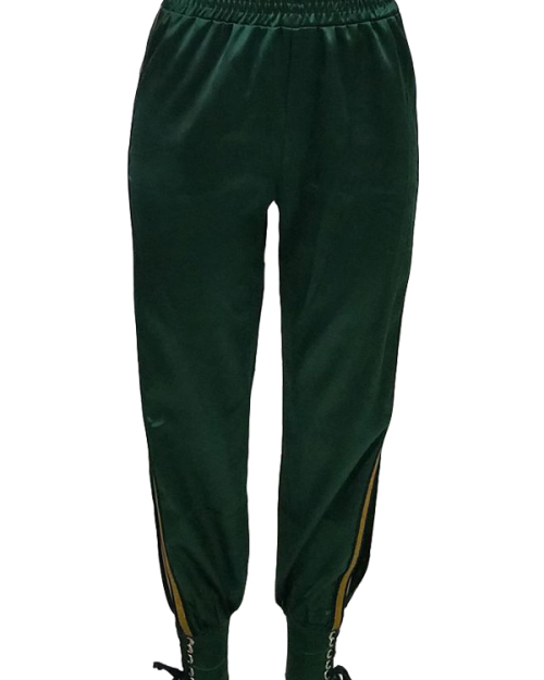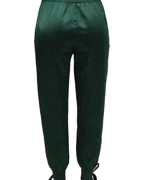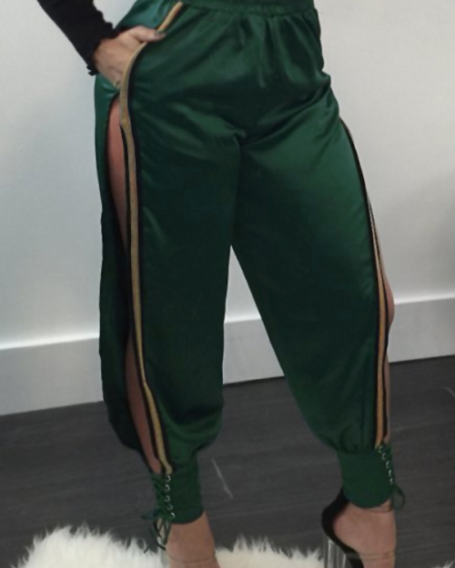 Sexy Mid Waist High Side Slit Green Polyester Pants
