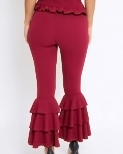 Trendy High Waist Falbala Design Wine Red Polyester Pants