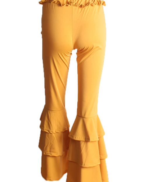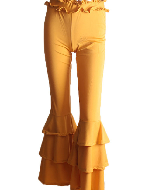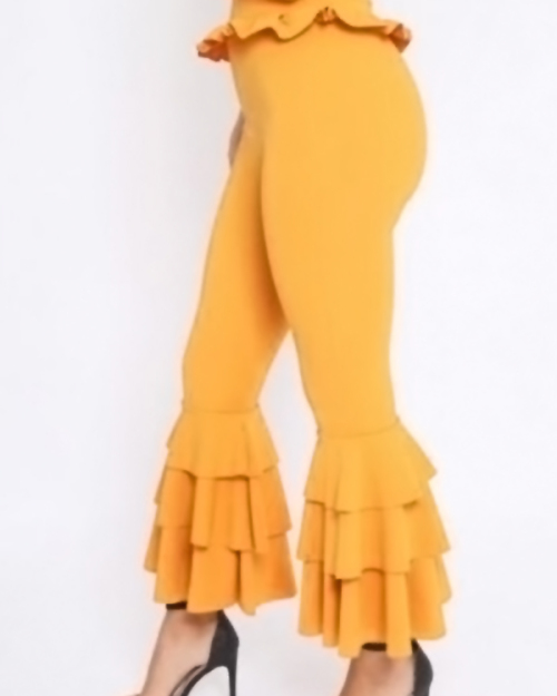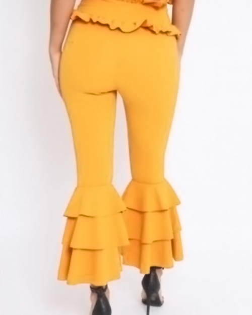 Trendy High Waist Falbala Design Yellow Polyester Pants