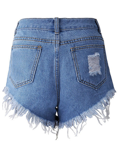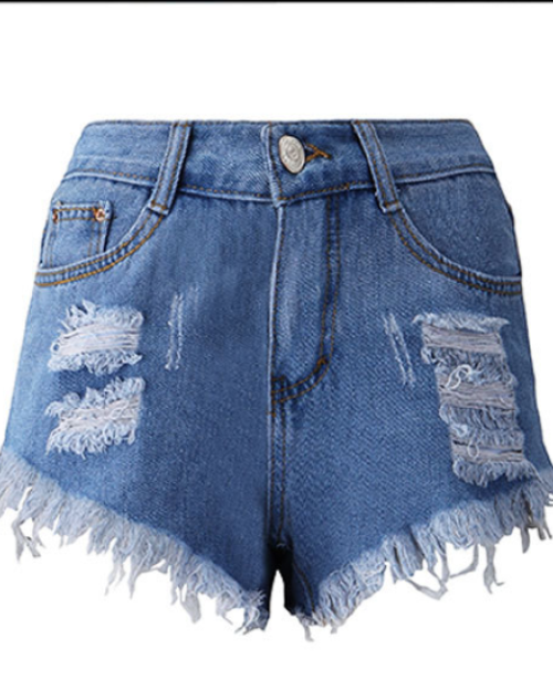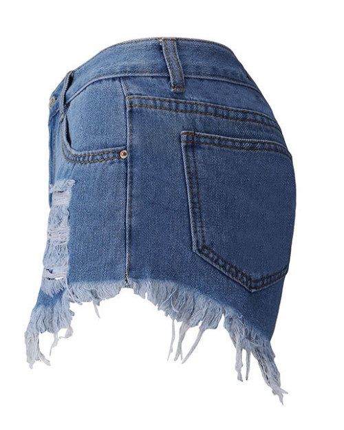 Tassel Euramerican High Waist Broken Holes Asymmetrical Blue Cotton Blends Shorts