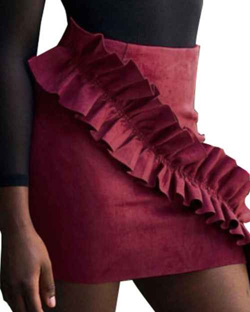 Euramerican Flounce Design Jujube-red Polyester Sheath Mini Skirts