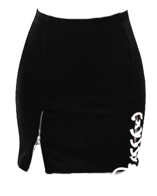 Euramerican Zipper Design Black Polyester Sheath Mini Skirts