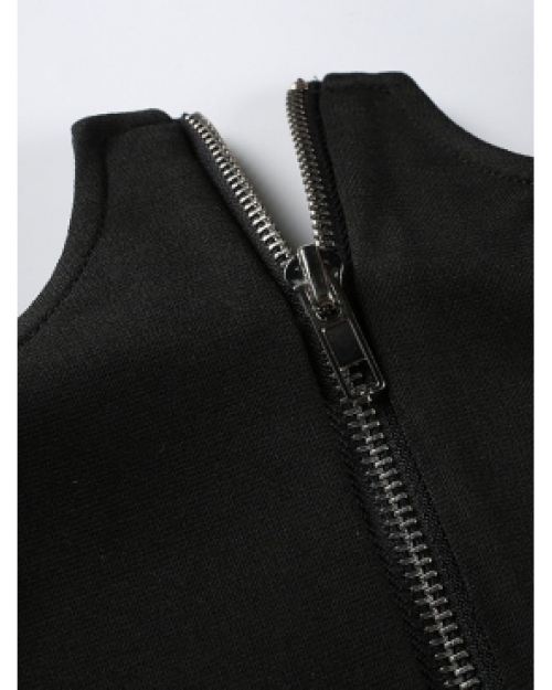 Stylish Zipper Design Black Polyester Sheath Mini Skirts