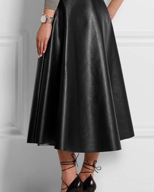 Trendy Mid Black Leather Mid Calf Skirts