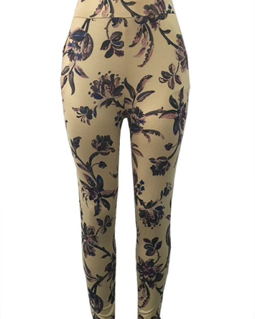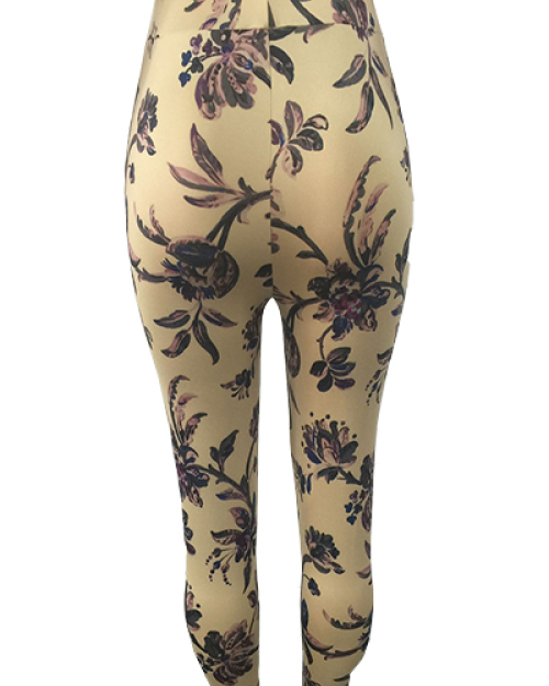Stylish Elastic Waist Floral Print Polyester Skinny Pants