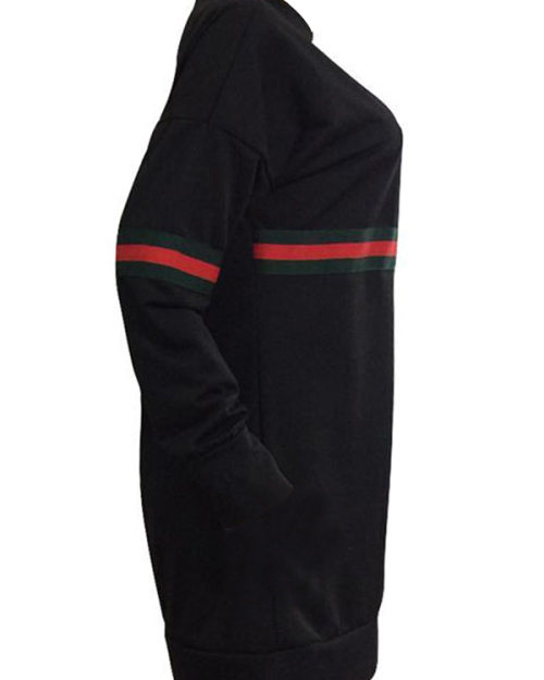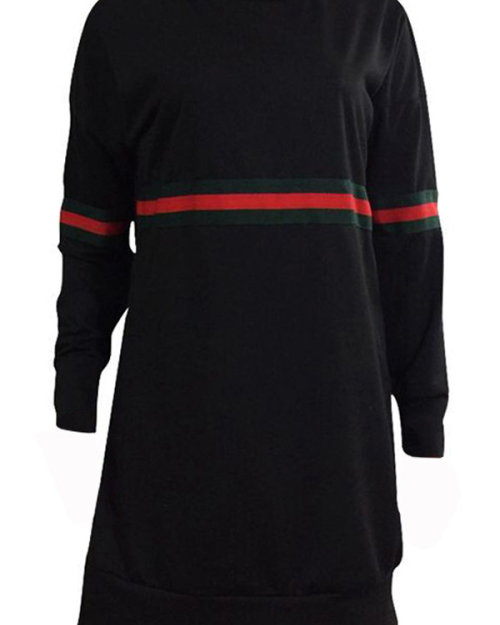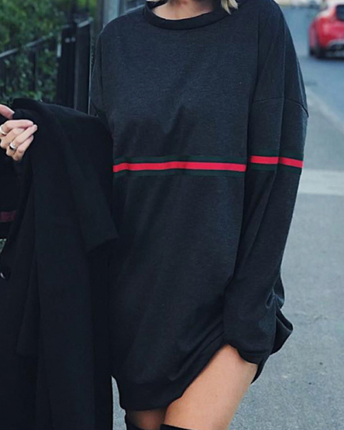 Casual Round Neck Striped Patchwork White Milk Fiber Cotton Blend Mini Dress
