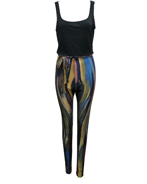 Casual Square Collar Printed Polyester One-piece Jumpsuits(With Belt)
