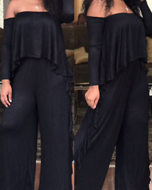 Casual Strapless Fold Design Black Polyester One-piece Jumpsuits