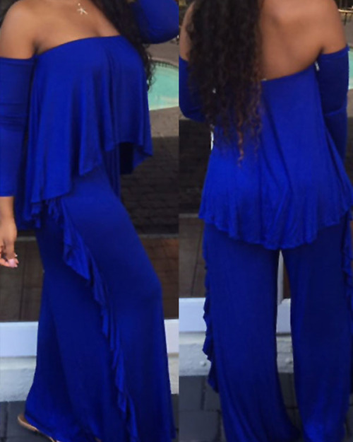 Casual Strapless Fold Design Blue Polyester One-piece Jumpsuits