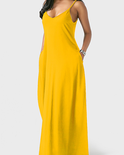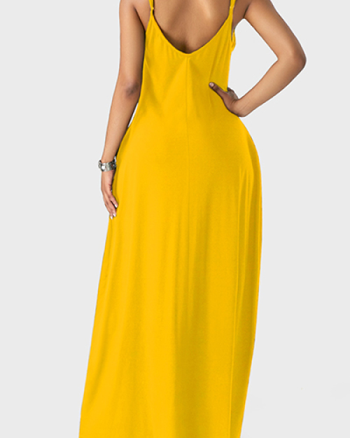 Casual V Neck Asymmetrical Yellow Blending Floor Length Dress