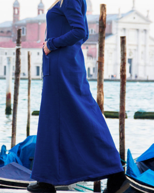 Casual V Neck Blue Milk Fiber Ankle Length Dress