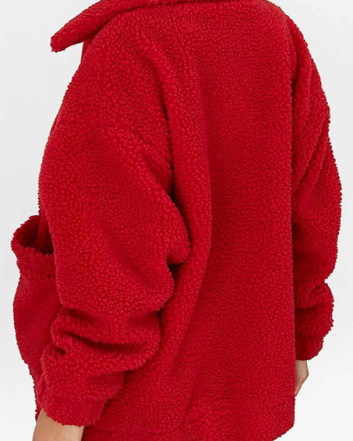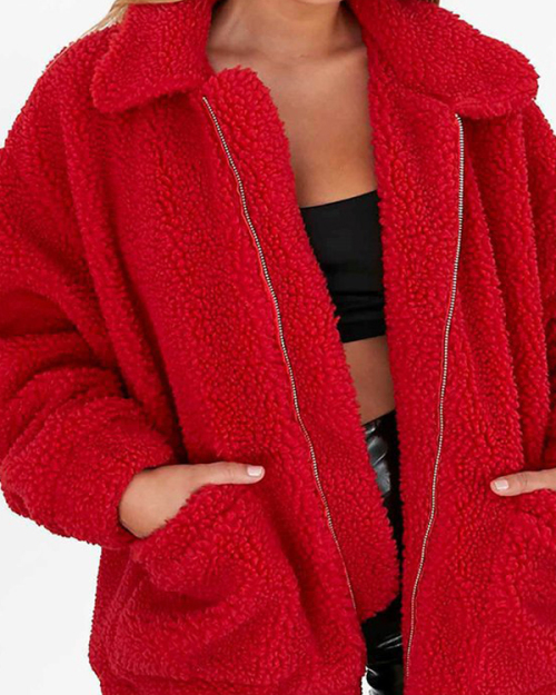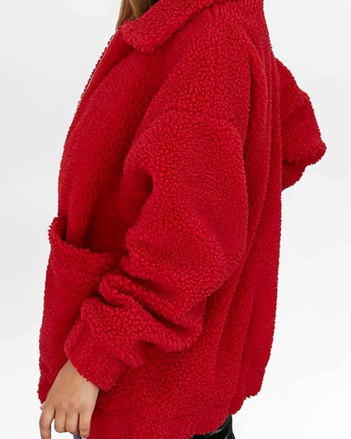 Casual Turndown Collar Long Sleeves Red Polyester Coat