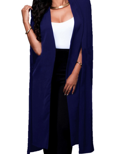 Trendy V Neck Long Sleeves Blue Polyester Long Coat
