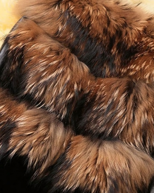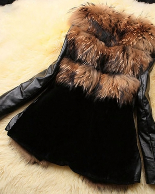 Trendy V Neck Long Sleeves Patchwork Yellow Faux Fur Coats