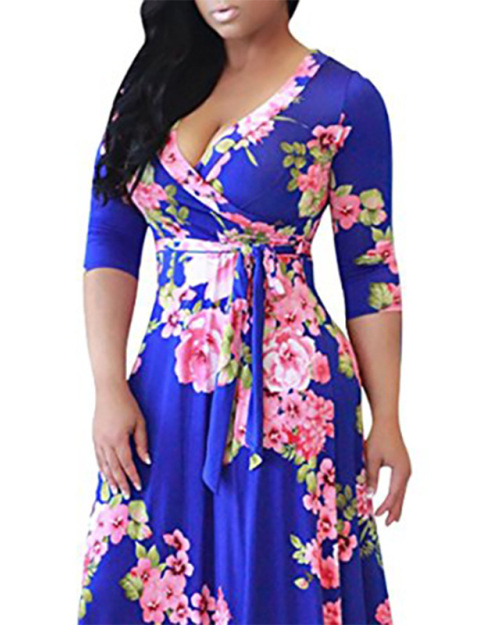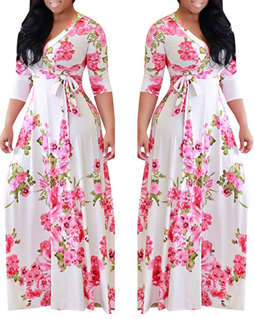 Cross-border explosion models Europe and the United States large size women's fat mmV collar Amazon printing lace waist skirt #94930