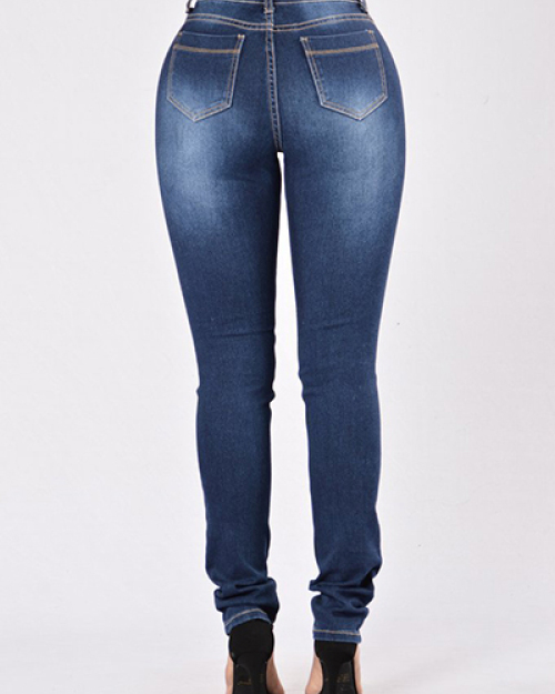 denim Solid Zipper Fly Mid Regular Pants Jeans