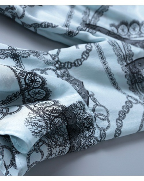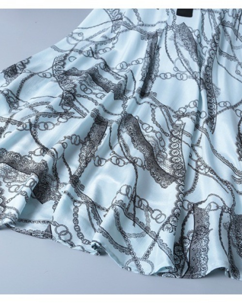 2019 short sleeve lace-up v-neck printed silk dress MIDI skirt womenswear temperament fashion big skirt woman #95053