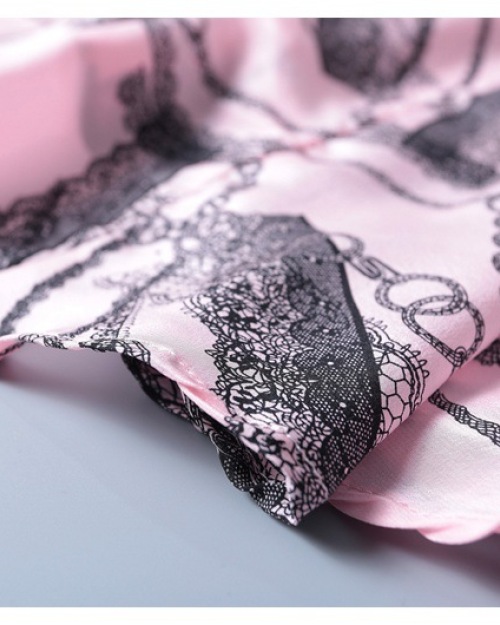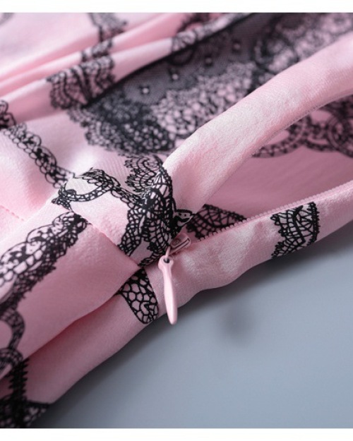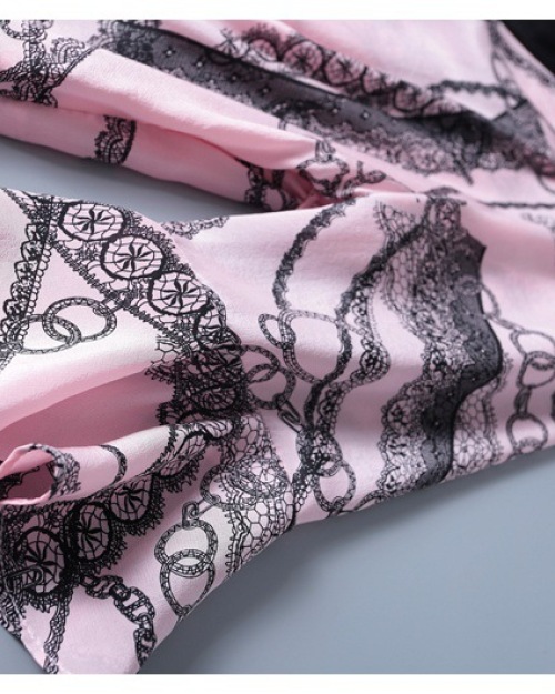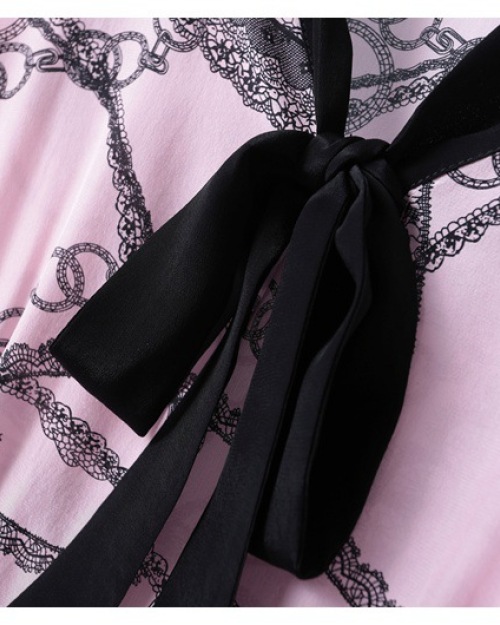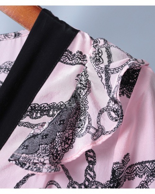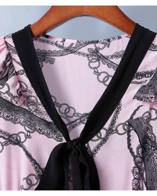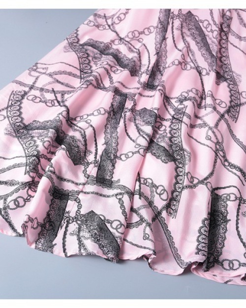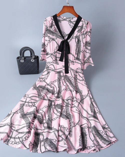 2019 short sleeve lace-up v-neck printed silk dress MIDI skirt womenswear temperament fashion big skirt woman #95055